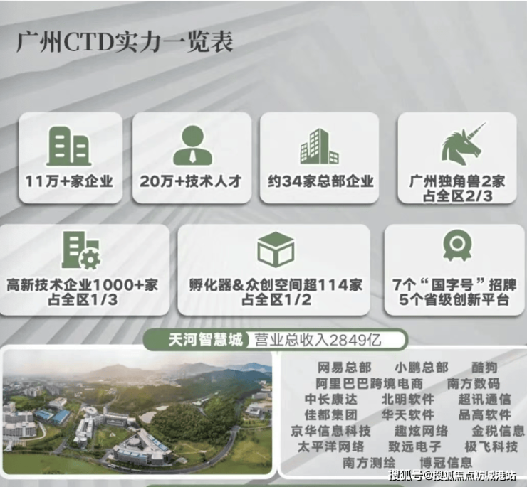 珠江・天河都荟占位广深港澳科技创新走廊、广州活力创新轴双重核心节点,属于天河智慧城核心居住区,周边汇集中国移动南方基地、网易总部、小鹏汽车、极兔科技等超 2000 家高新技术企业,高知人群聚集,圈层纯粹。