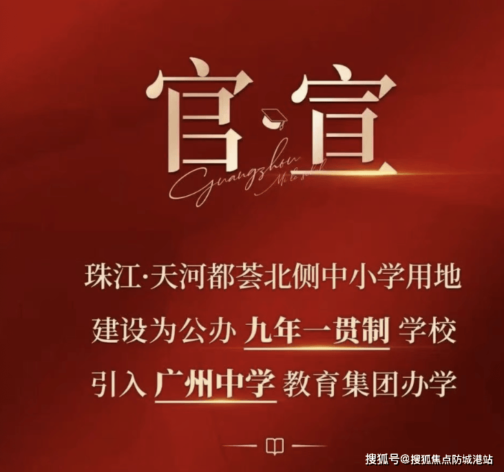 答:配建幼儿园 + 广州中学九年一贯制公办学校,官方官宣落地,周边还有清华附中湾区学校二期,12 年公办教育确定性 100%。