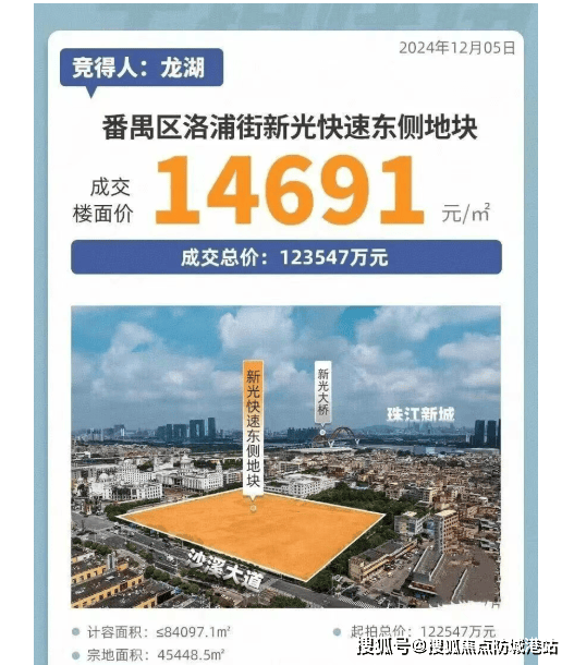 2024年12月5日,南通亚伦以约12.35亿元竞得洛浦街新光快速东侧地块,后由龙湖以1.4万/㎡低地价拿下,打造为龙湖亚伦央璟颂。龙湖向来以高品质改善产品闻名,此前在番禺成功打造龙湖御湖境。央璟颂优势显著,近市区、双地铁、双面江景,还是洛溪全岛唯一新房新规产品。南向望三支香水道,与大石隔江相望,周边江景氛围舒适,北向天气好时可眺望珠江新城。洛溪岛高端改善氛围浓厚,近20年无新增宅地,央璟颂作为容积率新规产品,在片区内独具优势。