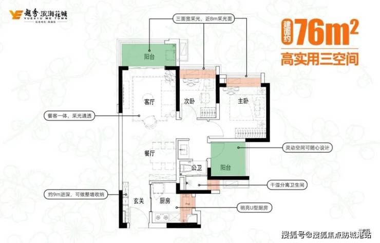 项目采用多种创新设计理念,如“大阳台”设计、270°环幕视野等,极大地提高了空间利用率;南北朝向的大面积观景阳台,让每一户都能享受到充足的自然光线和优美的景观视野。