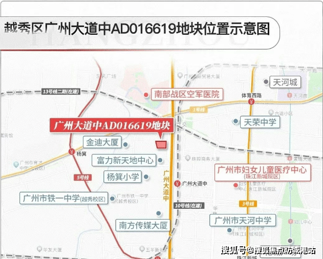 在交通方面,越秀东山云起周边交通网络十分发达,为居民的出行提供了极大的便利。项目周边 3km(直线距离)内共有 19 个地铁站,距离最近的地铁站为广州大道中站,步行即可轻松到达。其中,杨箕站(直线距离约 700 米)作为 1 号线和 5 号线的换乘站,可快速通往珠江新城、天河 CBD 和老城区;五羊邨站(直线 800 米)乘坐 5 号线可直达珠江新城、广州火车站、黄埔区;体育西路站(直线 800 米)是 1 号线和 3 号线的换乘枢纽,能够覆盖天河商圈、白云机场、番禺等方向。此外,预计 2025 年开通的地铁 10 号线广州大道中站距离项目直线距离约 400 米,届时将进一步提升项目的交通便利性,形成三地铁覆盖的优势格局。