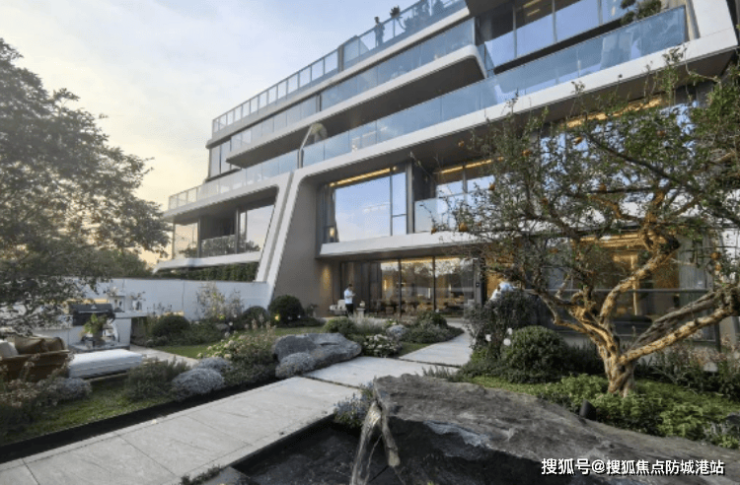 越秀国贸·观樾|天湖的建筑设计堪称摩登美学典范合墅外立面摒弃了常规别墅类产品欧式或中式的设计元素从豪华游艇中汲取灵感南向倾斜的形体层层叠退的露台立体而又流线型的轮廓强化分户感的线条走向使得每户都有自己的领域感流动的浅色石材或铝板线脚和仿铜色铝板型材勾边凸显精致与华贵阳台吊顶采用仿木纹铝板营造亲切宜人的氛围南向立面特地配置大面玻璃窗让业主可纵享自然湖景风光这种摩登美学建筑不仅外观时尚美观还与周边的自然景观完美融合辉映时代人居高度。