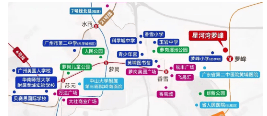 中学方面,项目北侧有一所90班的完全中学——广州苏元学校东校区,该校已纳入广州二中教育集团,办学实力雄厚,已于2024年9月正式开学,今年开设初一和初二两个年级,其中初一8个班,初二5个班。值得一提的是,项目符合政策的应届小学毕业生,小升初可对口直升苏元二中,该校2024年首届高考特控率达92%,位列黄埔区第一,办学质量有保障,真正解决高知家庭的教育焦虑。