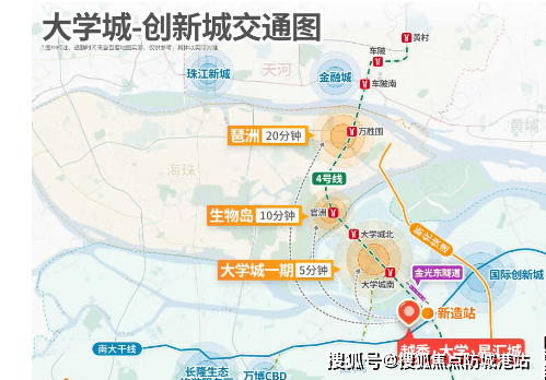 越秀大学星汇城的地理位置堪称“湾区最强大脑”的汇聚点,坐落于南中国硅谷——广州大学城二期板块,这里是广深港澳科技走廊、广州科技创新轴与南大干线经济带的三大黄金交汇点。交通便捷度是其核心优势之一,项目距离地铁4号线新造站直线距离仅约800米,步行约12分钟即可抵达。通过这条地铁动脉,业主可实现4站直达琶洲、5站到达金融城,轻松换乘多条线路,快速通达广州各大CBD。除了轨道交通,自驾出行同样高效。项目门口即接驳已通车的南大干线,一路串联万博CBD与广州南站;距离金光东隧道入口仅900米,经由隧道可无缝衔接大学城一期,15分钟可达琶洲,25分钟直抵金融城。此外,越秀地产还特意打造了穿梭巴士,一线贯通周边各大楼盘、高校及地铁站,进一步解决了“最后一公里”的出行痛点,让通勤变得前所未有的轻松。
