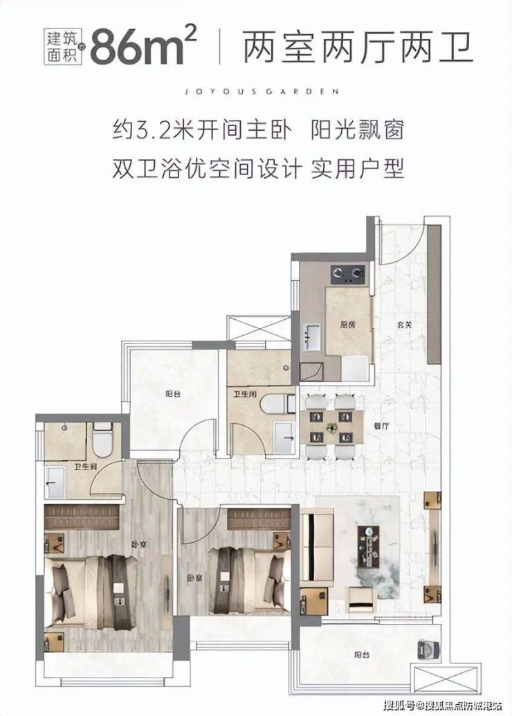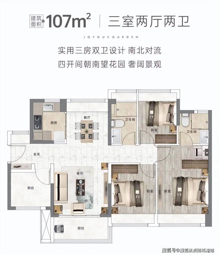 三四开间朝南,均配备飘窗,充分扩容居住空间