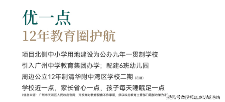 教育配套作为项目核心竞争力之一,实现从幼儿园到初中的12年一站式教育覆盖,为业主子女提供优质且便捷的教育资源。根据官方规划,项目119地块配建一所6班幼儿园,满足业主幼儿启蒙教育需求;北侧108地块规划建设公办九年一贯制学校,正式引入广州中学教育集团办学,依托广州中学的优质教育资源与办学理念,打造区域内优质教育标杆,为孩子的成长保驾护航。