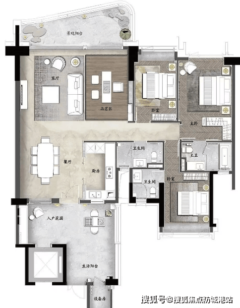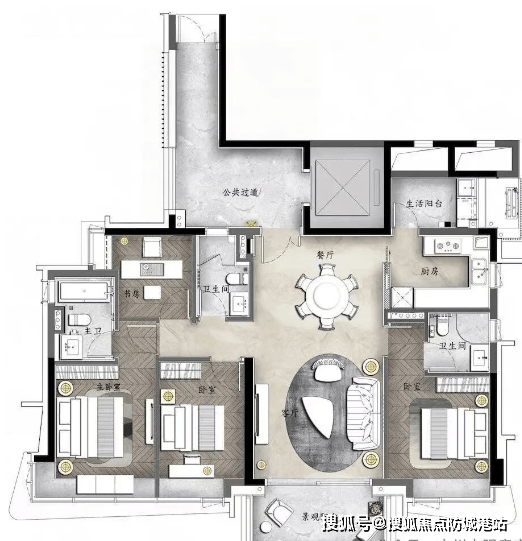 C户型:约140㎡南向园景大宅,超高性价比,三卧室朝南设计,阔绰双主套房。