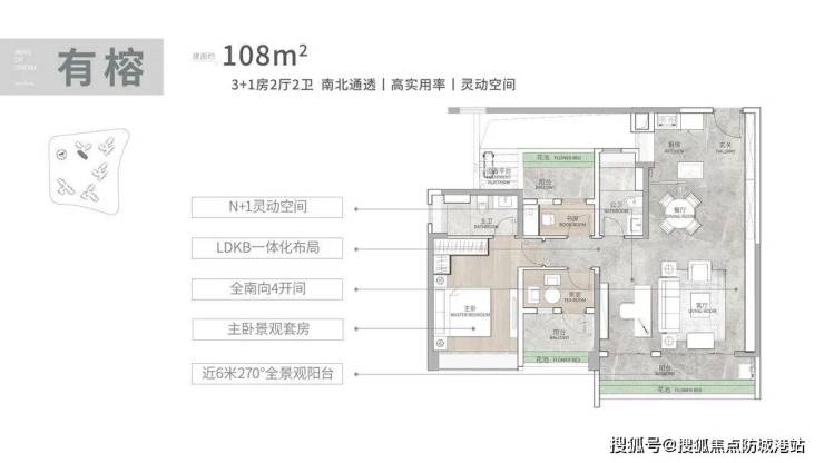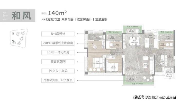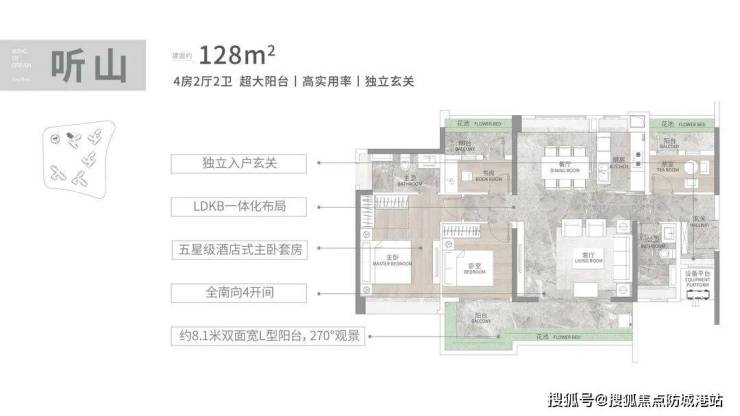 联投文津府在产品设计上最显著的标签是其极高的空间使用率,部分户型得房率接近100%,这在高层住宅市场中较为罕见。以建面约108平方米的三房加一房户型为例,该户型实现了四开间朝南的布局,南向阳台进深适中,长度近6米,配合LDKB(客餐厨阳台)一体化设计,使得公共活动区域视觉延伸感强烈。主卧套房配置了南向大飘窗、独立卫浴及L型衣帽间,功能分区明确。再看建面约128平方米的四房户型,引入了L型独立玄关设计,不仅增加了收纳容量,也提升了归家的仪式感;其8米长的L型阳台横跨客厅与次卧,餐厅位置同样设置了全景飘窗,实现了真正的南北对流。更大面积的建面约140平方米及165平方米户型,则进一步拓展了景观面宽,其中165平方米大平层南向采光面达到17.4米,配备近9米的L型景观阳台,并设计了中式厨房与独立西式岛台的双厨配置,满足多样化烹饪习惯。所有房间次卧均采用全景落地窗设计,配合3.1米的层高,极大地提升了室内的通透感与采光效率。
