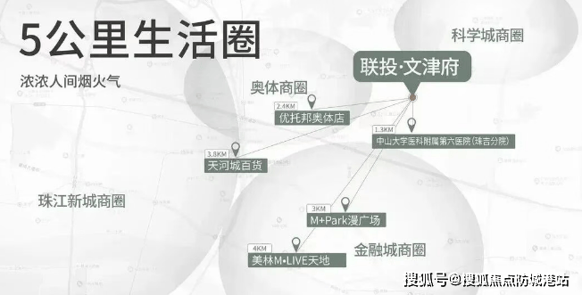 在生活配套方面,联投文津府依托奥体板块的成熟资源,能够满足日常消费需求。商业配套上,周边荟聚了太古汇、美林M·LIVE天地、优托邦购物中心、天河城百货等大型商业综合体,居民驾车即可享受丰富的购物、餐饮与娱乐体验。医疗资源方面,中山大学附属第六医院、暨南大学附属第一医院等三甲医院近在咫尺,为家人的健康提供了坚实保障。尽管项目自身周边的大型商业配套相对欠缺,城市界面也呈现出一定的城乡结合部特征,但随着天河东区开发的深入,这片区域的宜居属性正在逐步提升。项目所在的天河板块连续16年位居广州城市GDP榜首,汇聚了国家级产业集群与高质量人才,土地价值与房价涨幅一直领先全城。区域绿化率高达42.7%,平均每500米即可抵达一处公园或园区绿地,这种从“宜居”到“宜距”的无缝切换,使得居民既能享受城市的繁华便利,又能随时回归自然的宁静。