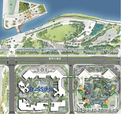 项目分A、B两个地块开发,由空中连廊连接,属于围合点状式布局。这种布局方式不仅能够最大化利用土地资源,保证每一栋楼的采光和通风效果,还能营造出开阔的社区空间,提升小区的整体舒适度。项目一共有9栋高层住宅和3栋商业公寓组成,其中位于西南角有1栋配建的人才房,整体楼栋排布合理,错落有致,既保证了业主的居住私密性,又能让业主充分享受社区的园林景观和江景资源。