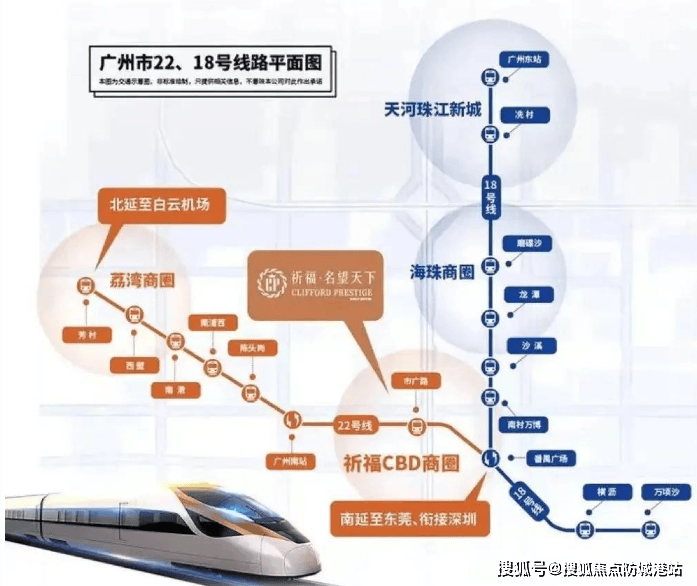 祈福名望天下坐落在地铁22号线市广路站旁,被誉为“大湾区超快地铁”,时速可达160公里/小时,仅需一站即可到达广州南站,三站到海珠荔湾,六站直达珠江新城。未来,该线路还将连接深圳,进一步增强区域间的联系与互动。此外,项目周边还有丰富的商业、医疗、教育资源,使其成为理想的居住地。