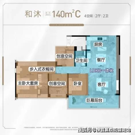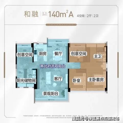 140㎡四房:南北对流双阳台,餐客厅一体化,总价1080万起。