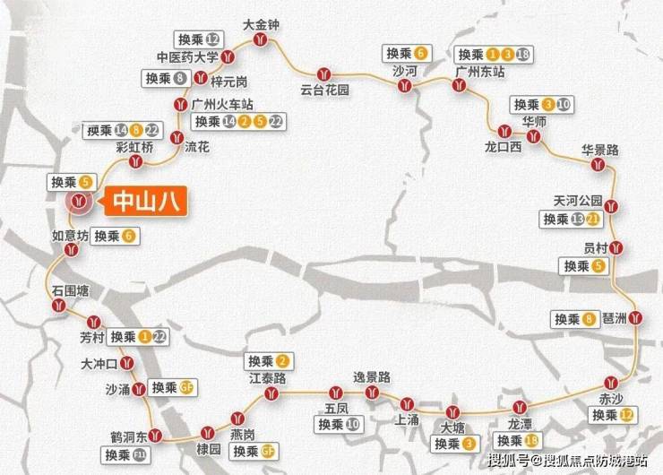 200米【鹤洞地铁站C出入口口】,可搭乘广佛线,往东2个站到海珠(沙园),可以换乘8号线去往琶洲,往西1个站到西塱,可以换乘1号线去往越秀、体育西等【鹤洞站】出发一个站到【沙涌站】,即可换成地铁11号线(预计2024年底开通)这是广州中心区大环线,可以通达环市东、珠江新城、天河北、琶洲等多个CBD。