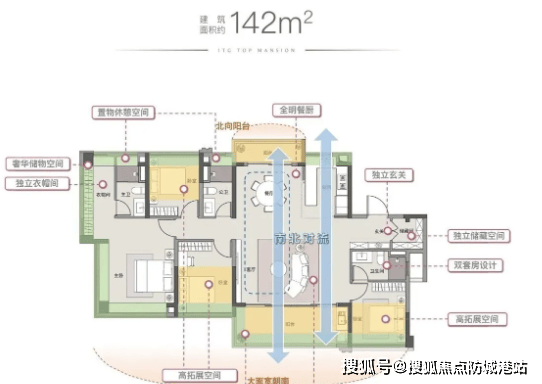 143㎡高端改善四房户型,2梯2户配置,私密性极佳,四房两厅三卫设计,主卧为豪华套房,配备独立卫浴、衣帽间、飘窗,尊享品质生活。客厅采用大面宽设计,连接超大南向阳台,视野开阔,采光充足;次卧空间宽敞,可根据需求改造为书房、儿童房等,灵活性强。该户型适合追求高端居住体验的改善型家庭,是清盘阶段的热门户型。