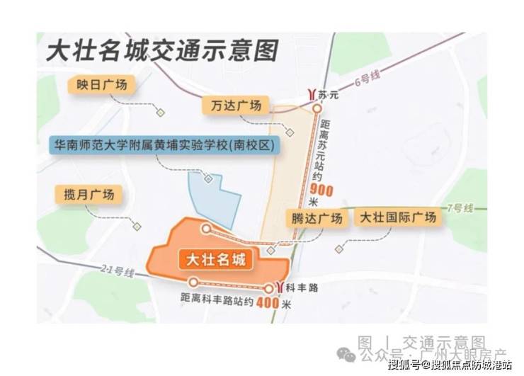 商业配套:项目自带20万㎡商业综合体(大壮国际广场),周边3公里内有万达广场(黄埔店)、至泰广场、萝岗奥园广场等6大商业体,总商业面积超80万㎡;
