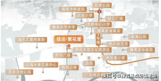 信达繁花里坐落于番禺核心区域的市桥板块,禺山大道南侧,地理位置得天独厚。作为番禺的老城核心,这里汇集了番禺区政府、政务中心、海关、税务局等重要行政部门,周边行政氛围浓厚,生活配套成熟,是番禺区发展最为完善的板块之一。