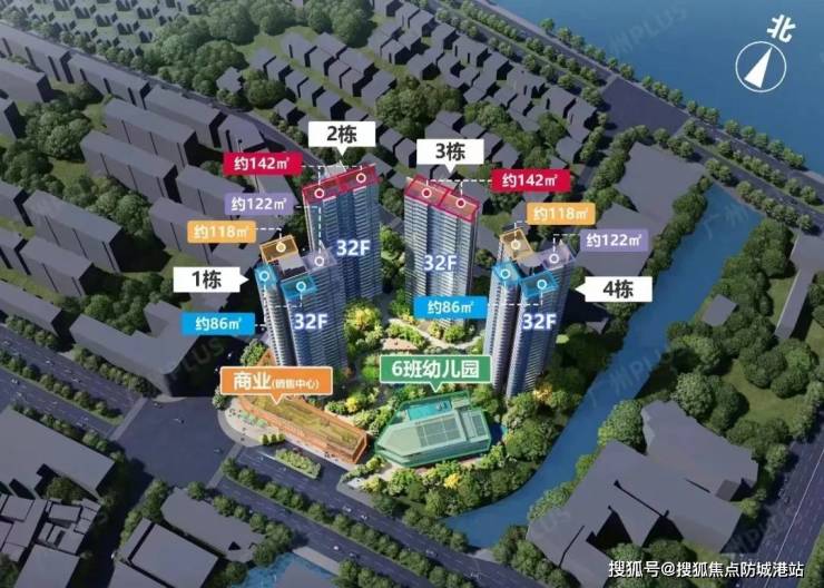 项目主推建面约110-180㎡纯四房户型,采用“全南向+大开间”设计,使用率高达100%,满足三代同堂或二孩家庭需求。