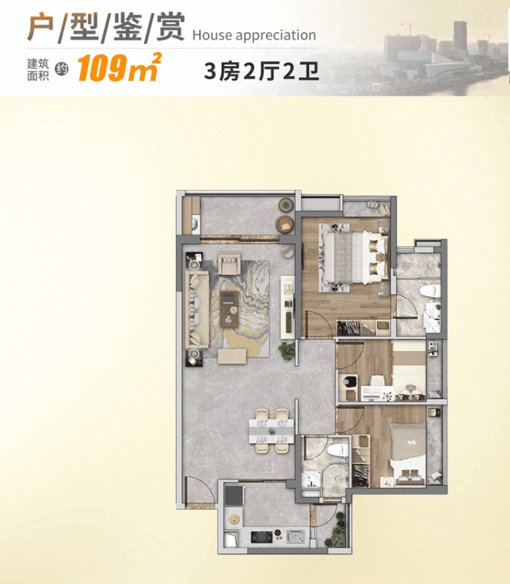 这里的户型设计堪称一绝,尤其是“舒适N+1”系列。比如建面约109㎡的江景大三房,三面单边设计,推窗即见旖旎江畔;而建面约114㎡的奢居四房,则通过南北通透的设计,实现了全屋暖阳倾洒的理想状态。每个房间都配备了宽敞的飘窗,增加了室内的视觉开阔感,同时也提高了居住的舒适度。