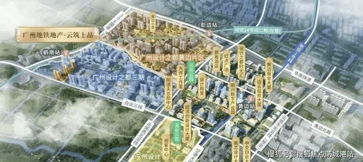 在广州城市北拓的宏大版图中,白云设计之都始终占据着“广州时尚之都”与“国际交往中心”的战略高地。作为广州地铁集团深耕TOD开发的第N个里程碑之作,【云筑上品】屹立于设计之都核心腹地,以约12万平方米的恢弘体量,重塑了白云新城北延的居住天际线。项目紧邻广州地铁14号线二期鹤南站(在建),是广州主城区罕见的“轨道+物业”深度融合的范本。