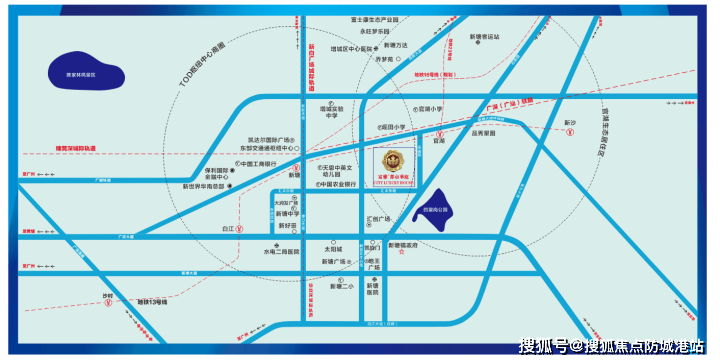 项目地处新塘核心发展板块——东江新区,地理位置优越。南临107国道,西接荔新公路,北连广园快速路,快速通达广州主城区。尤为值得一提的是,广州地铁13号线官湖站已于2017年底开通运营,项目距该站点仅约1公里,步行或骑行即可便捷抵达,实现与黄埔、天河等核心城区的高效连接。依托广州东部交通枢纽中心建设规划,未来区域路网将进一步升级,出行效率持续提升。