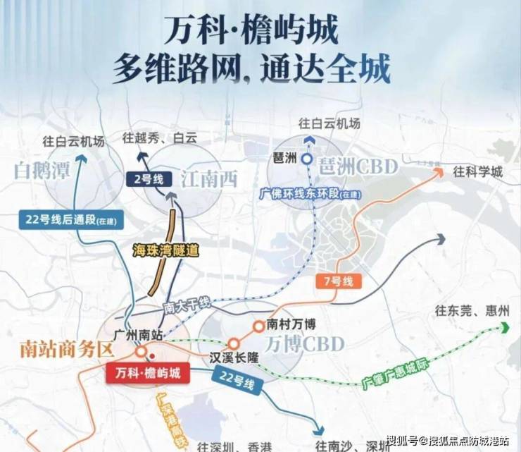 万科檐屿城坐拥广州南站这一国家级交通枢纽核心腹地。这里汇聚2条高铁、5条地铁(2号线、7号线、22号线、广佛线及在建线路)、6条城际轨道,构建起“15轨交汇”的立体交通网络。从项目出发,4站直达万博CBD,6站抵达珠江新城,15分钟无缝接驳琶洲、金融城,30分钟通达白云机场。广湛高铁开通后,更将实现49分钟直抵香港、1小时覆盖大湾区主要城市,真正实现“湾区一小时生活圈”。