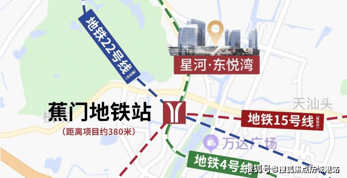 核心位置:星河东悦湾坐落在南沙区政府旁,紧邻地铁4号线蕉门站,距离仅约610米,步行大约需要10分钟。未来,这里还将有地铁15号线和22号线交汇,进一步提升区域交通便捷性。此外,项目周边有成熟的商业、教育和医疗资源,满足了居民日常生活所需。