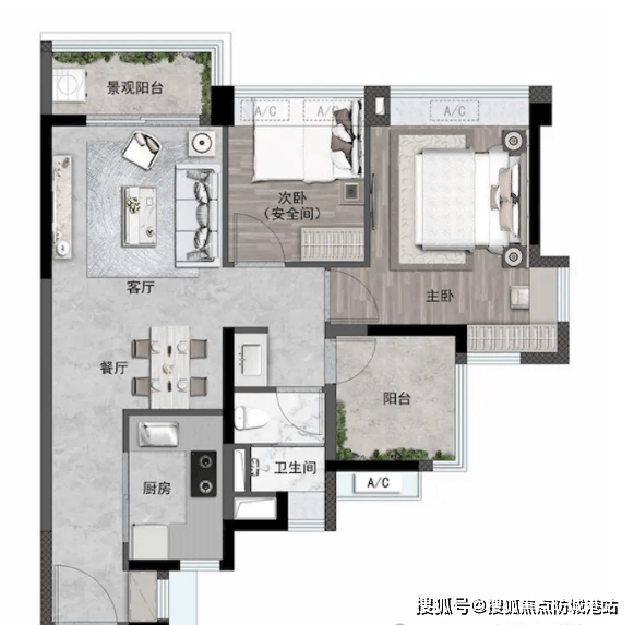 72㎡两房:得房率 97.44%,客厅面宽 3.2 米,全屋 6 处飘窗赠送(含主卧转角飘窗),阳台占比 14.5%,还带百变空间(可改造成书房、储物间),适合单身青年或新婚夫妻。虽为两房,但高得房率让空间实用不紧凑,万科精装品质也省去装修烦恼。