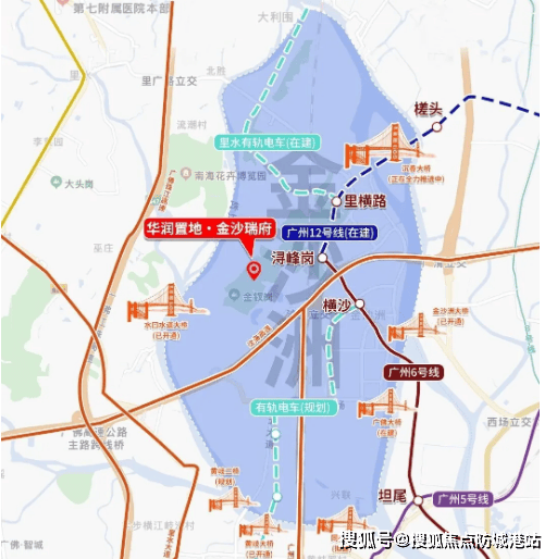 自驾出行方面,项目周边有金沙洲大桥、大坦沙大桥已通车,沉香大桥、同心桥处于在建状态,水道口大桥、黄岐大桥、丰岗大桥正常通行,碧江大桥处于规划中,形成全面环绕的交通路网。