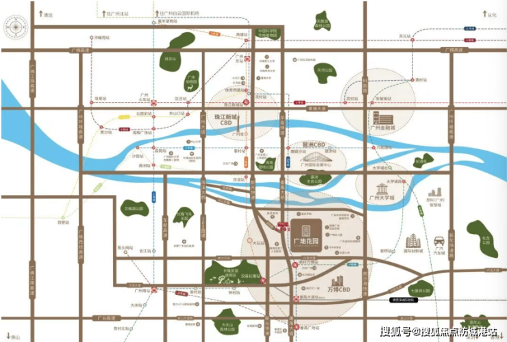 自驾(核心优势):项目紧邻华南快速干线入口,自驾 8 分钟上华快,10 分钟直达琶洲新洲站,15 分钟抵达珠江新城、猎德 CBD,20 分钟通达天河、海珠核心区。经番禺大道北、南大干线、兴南大道等城市主干道,5 分钟到万博,10 分钟到汉溪长隆,15 分钟到广州南站,无缝衔接大湾区路网广州市番禺区人民政府。相比万博核心区拥堵路况,广地出发可少堵 3-5 公里,通勤时间更可控。