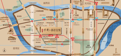 项目坐落于工业大道中,背靠珠江后航道,位于海珠新活力文商旅融合圈与广州市首个后航道服务型制造创新带的交汇核心。海珠后航道将成为未来唯一连片开发的豪宅板块,环绕着广州顶尖的产业、商业、文化和旅游资源,成为宜居的理想居住区,兼具现代生活的繁华与传统文化的底蕴。