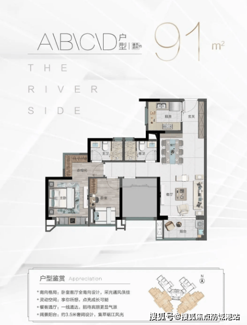 ✅在售户型面积:全南向三房,适配各类家庭需求