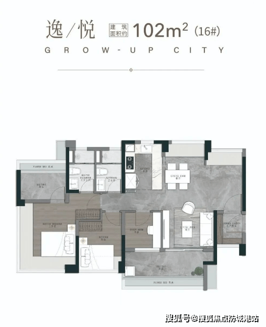 86㎡三房两卫:南向四开间约11.1m采光,主卧360°无立柱景观飘窗,享受更多阳光与风景。餐客厅旁设置X空间,可改造成琴室、茶室、会客空间等,满足家庭多元化需求。