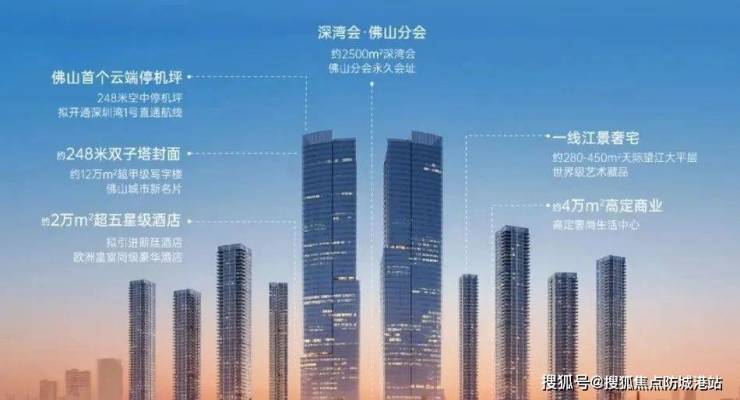 小区配套:约12万㎡超写字楼(248米)、超2万㎡酒店、超4万㎡商业以及住宅等多种业态,并规划打造深湾会·佛山分会会址(约2500㎡会所空间),并于约248米高度设云端停机坪等。