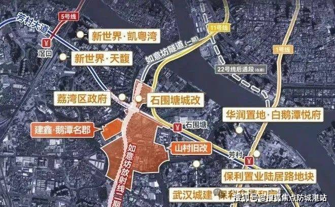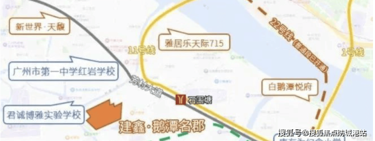 建鑫·鹅潭名郡交通便利,距离地铁11号线石围塘站约600至800米,步行可在十分钟左右抵达,换乘多条地铁线路即可通达全城核心区。地铁11号线作为广州首条大环线,途经主要商业及商务区,换乘站多达十四个,通勤效率高。项目自驾出行同样便利,紧邻芳村大道,通达洲头咀隧道及内环路,可快速到达天河、越秀及核心商务区。
