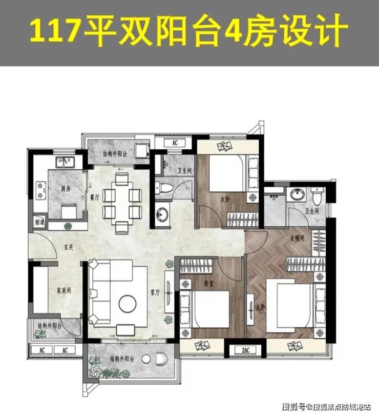保利天汇左岸目前主要在售的有90-117平共4种户型。