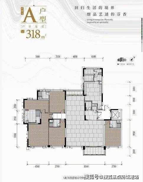 臻玥广场的公寓两种面积,318平米和398平米,都是大平层,五房两厅五卫,三梯两户设计