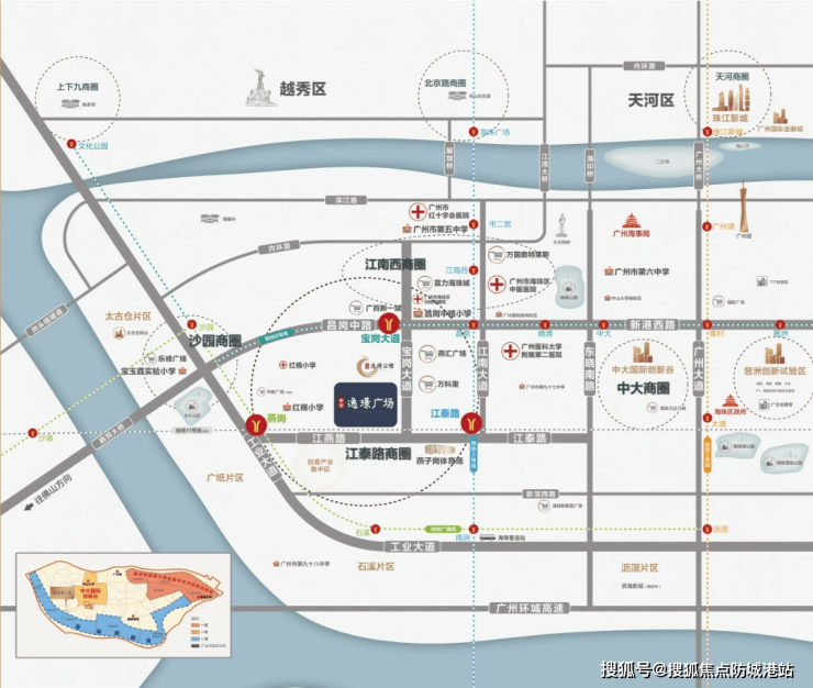 中冶·逸璟广场位于广州市海珠区宝岗大道与江燕路交界处,地处昌岗、江南西、乐峰以及江泰路四大商圈的环绕之中。出门即享繁华生活,无论是现代会展、电子商务还是文化创意产业,在这里都能找到发展的空间和机会。不仅如此,项目周围四地铁环绕,交通便捷,出行无忧,为居民提供了一个高效、便捷的生活环境。