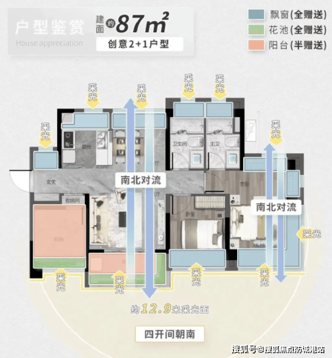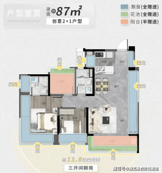 在售户型面积段为87-134平方米,全部朝东南或西南方向设计,实现了超100%的实用率。目前主要在售的是3/5号楼,并已新加推出2号楼。这些户型不仅空间布局合理,而且注重细节设计,如87A户型的四开间朝南设计、112户型的三阳台赠送等,满足了不同家庭的需求。