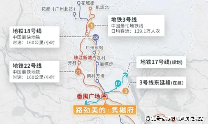 路劲美的隽樾府地理位置优越,步行至地铁口的距离不超过1公里,且周围有4条地铁线交汇,分别是现有的3号线以及规划中的18号线、22号线和17号线。自驾出行也十分便捷,周边有番禺大道和南沙港快速等主干道可供选择。