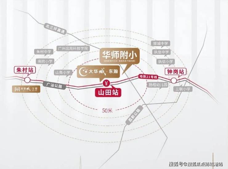 大华城——涵盖大华朱村中心城市地标(规划中)、地铁、教育、产业、商业、生态各项配套,名副其实的一生大城,未来容纳广州东约 30 万人口繁华居住地。