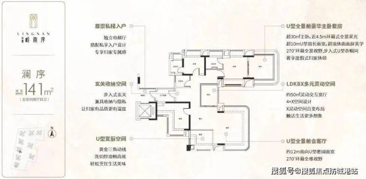 【澜序丨建面约141㎡全景舱户型 五空间两厅四卫】