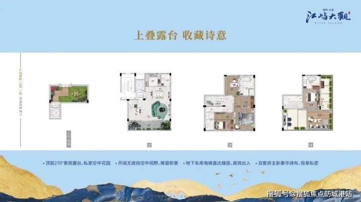 建筑面积约13万方江岸巨著,集商务、办公、居住于一体,主力产品为江山叠院、江景公馆,自规划美学园林、科创广场、文化中心、老年中心等奢级配套,属于城央之上的纯粹高端住区。