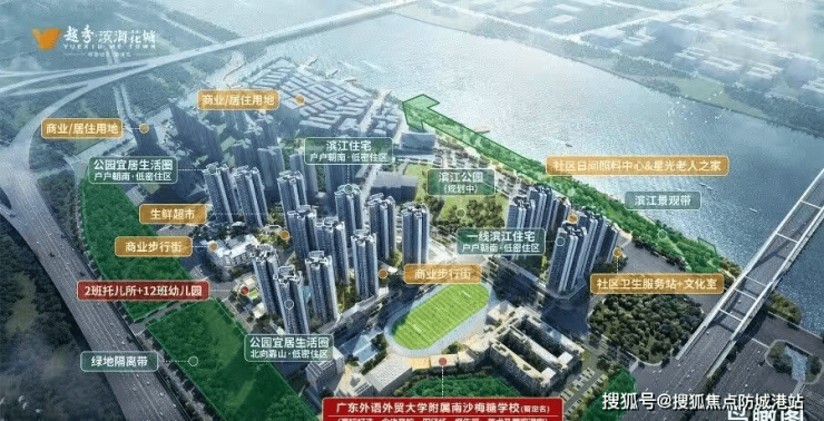 越秀滨海花城周边教育资源丰富,学术氛围浓厚,根据广州市教育局2025年最新备案信息,项目1KM内拥有3所幼儿园、2所小学、1所中学,其中包括与广外教育集团合作的广外南沙学校(已开学),该学校为九年一贯制公办学校,师资力量雄厚,2025年中考升学率达85%,位列南沙区前列。