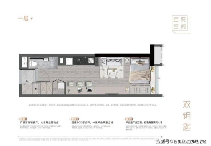 天启主推41-53㎡复式公寓,买一层享两层,空间感媲美传统90-110㎡户型。41㎡双钥匙复式,三户分租三倍收益,纯南北对流、阳光满屋,主卧套间设计,视野开阔无界。53㎡三房两厅复式类别墅户型,办公接待一步到位,LDK一体化巨厅、二层双卧布局,功能灵活。整体复式设计强调社交与私密分离,阳台与窗台景观面宽大,珠江资源不浪费一分,实用率极高,真正做到“买小住大、买小享墅”。户型注重功能灵活与健康细节,定制收纳、智能体系贯穿始终,明火带阳台、可投资自住两相宜。在荔湾低总价滨江市场,天启以41-53㎡复式+产权现楼+双钥匙三倍收益,完美平衡总价与空间,户型价值位居板块前列。