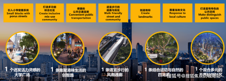 五个一理念:社区围绕“五个一”进行打造,包括“一个盒子”、“一条高街”、“一条低街”、“一个广场”、“一个内谷”。