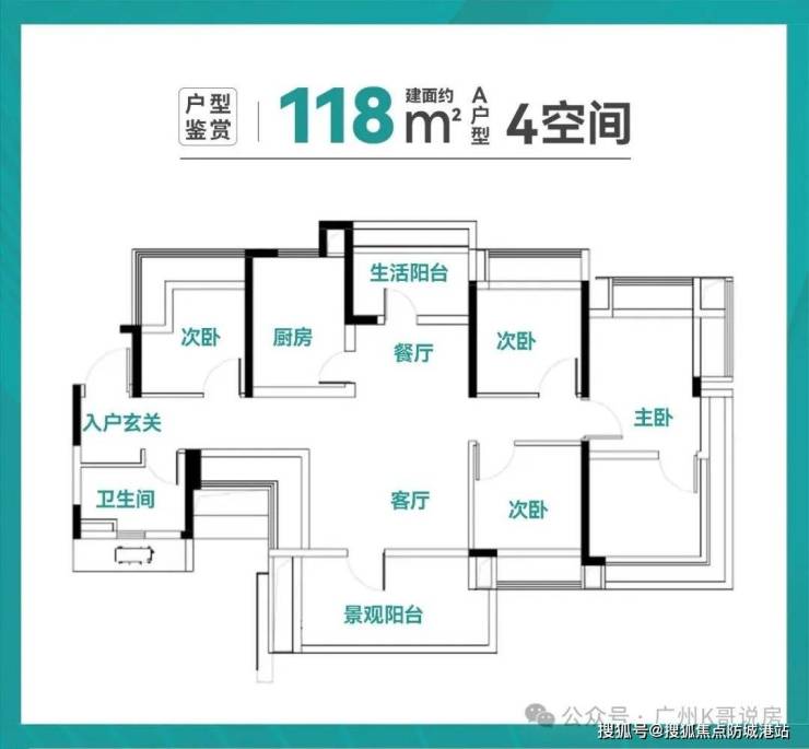 四开间朝南,约16.3米南向面宽,南北对流双阳台,独立家政空间。