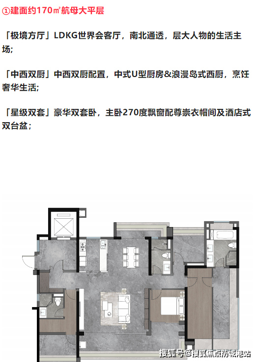 保利臻誉提供多种户型选择,从107平方米至170平方米不等,全部为纯南向板楼设计,确保每户都能享受充足的阳光和开阔的视野。其中,170平方米户型特别适合追求高品质生活的家庭,配备了极境方厅、中西双厨配置以及豪华双套卧;而107平方米户型则更适合首次购房或小家庭居住,同样拥有四开间朝南的设计。