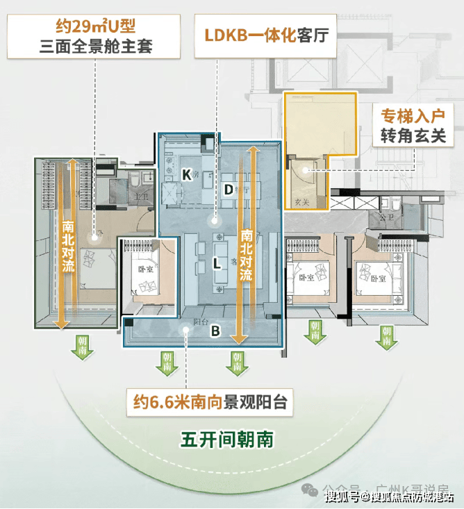 其二,更短进深,且全户型无遮挡,通风、视野效果拉满!