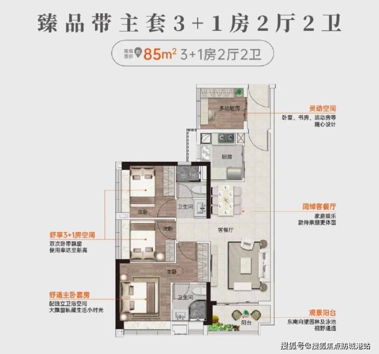 建面约85㎡丨低总价四房两卫