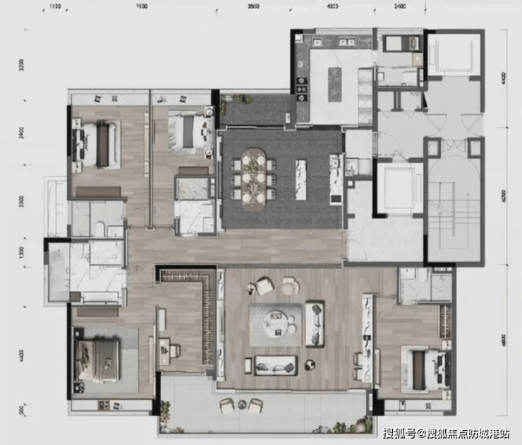 合景臻颐府住宅产品以200-350㎡墅质大宅为主,户型设计兼顾通透性、采光和实用性。三梯两户的设计确保私密性,每户均配备双阳台,最大化视野和景观享受。客餐厅宽敞大气,布局合理,满足多功能生活场景需求。部分户型还配备中西双厨设计,适合家庭日常烹饪及聚会需求。3.5米PLUS层高使室内空间更开阔,增强整体舒适度。以290㎡大平层为例,户型布局灵活,既能满足家庭成员的独立生活需求,也可兼顾亲友聚会场景,体现高端人居的精致生活理念和现代禅意风格,兼顾舒适性与实用性,是追求品质生活家庭的理想选择。